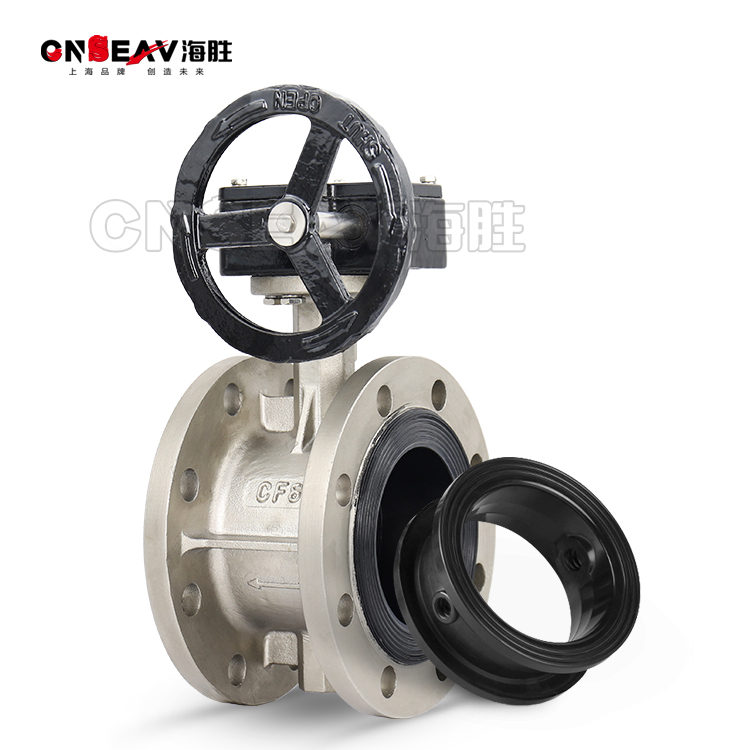 阀座采用合成橡胶,关闭时蝶板的外圆密封面挤压合成橡胶阀座,使阀座产生弹性变形而形成弹性力作为密封比压保证蝶阀的密封。
