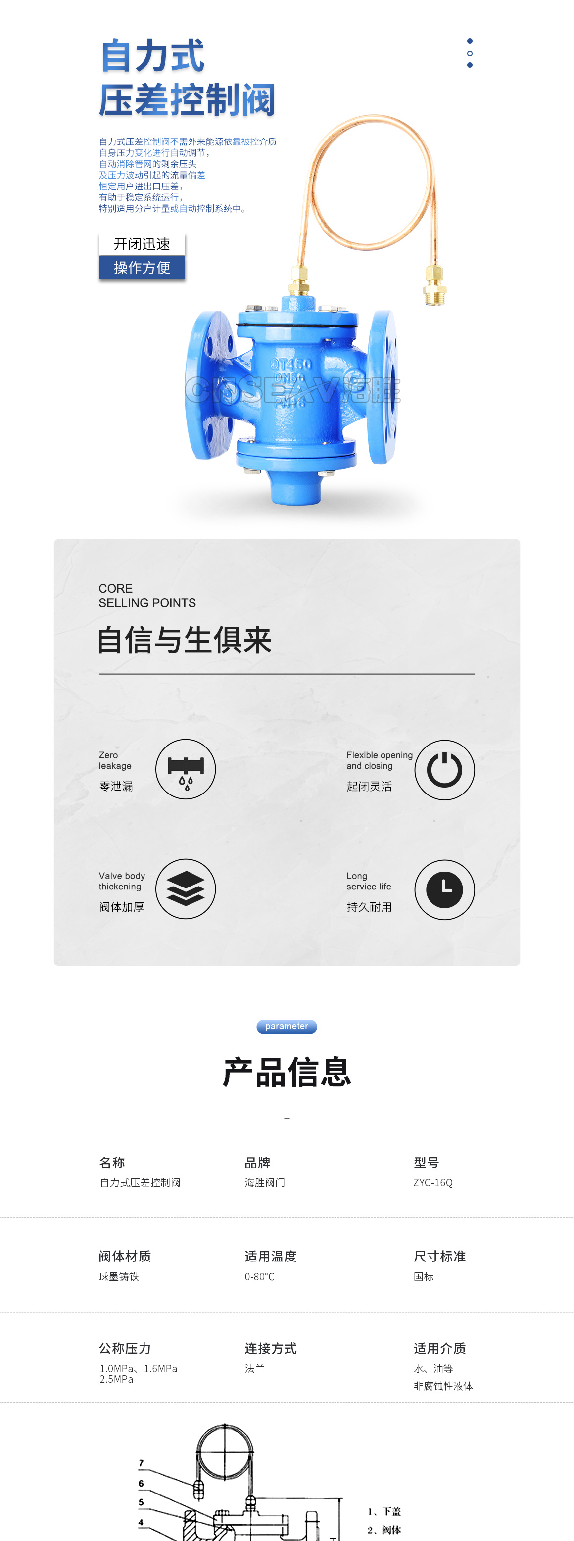 自力式压差控制阀ZYC结构特点: