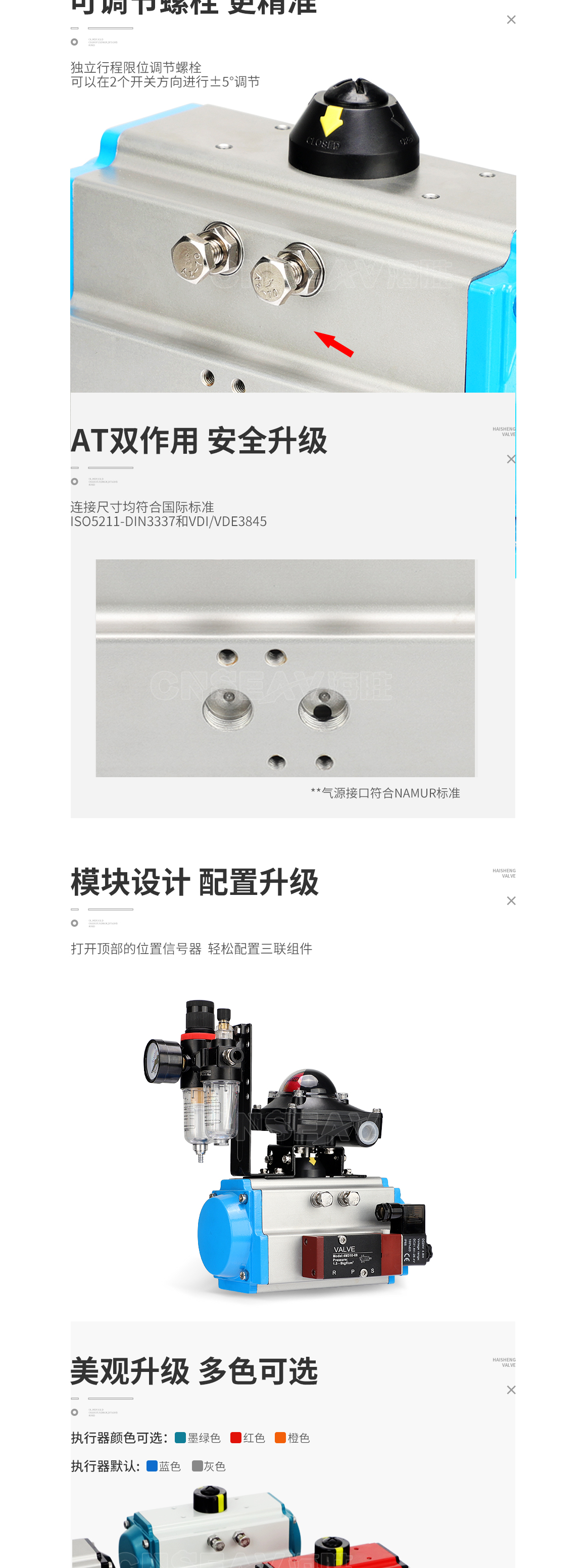 执行器型号 | GT、AT、AR、AW系列单双作用气动执行器 |