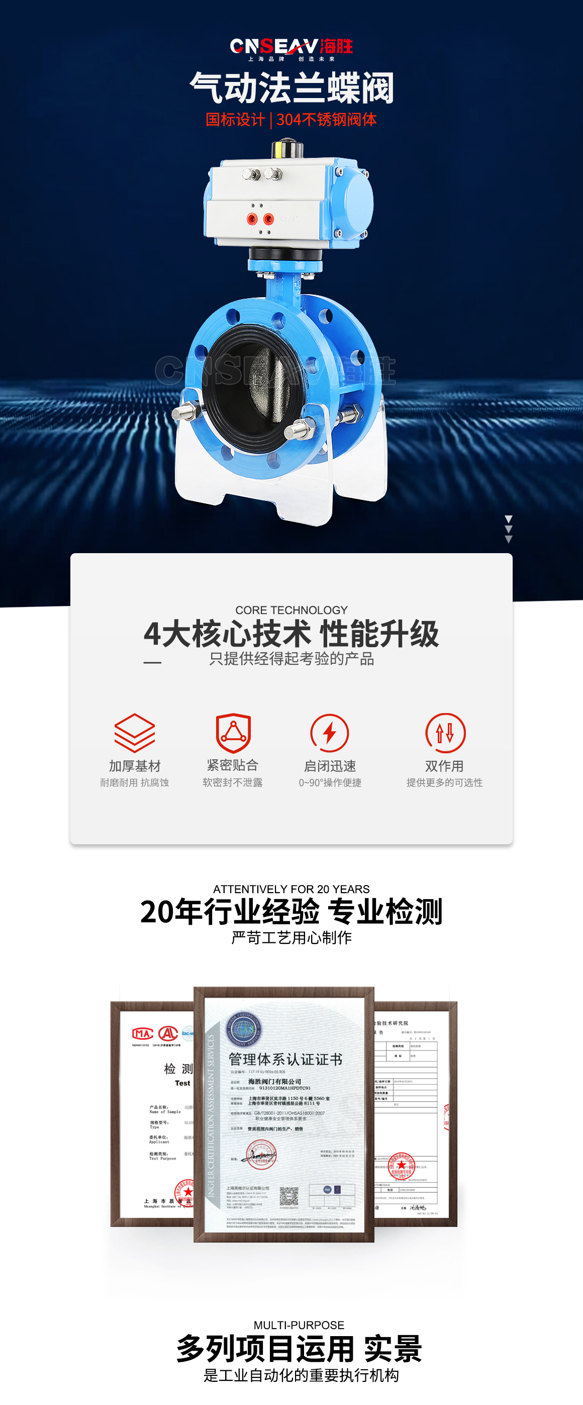 软密封气动法兰蝶阀D641X适用于温度≤120℃或≤150℃,公称压力≤1.6MPa给排水、污水、食品、供暖、燃气、船舶、水电、冶金、能源系统以及轻纺等行业,特别适用于双向密封和阀体易锈蚀场合,作调节流量和截流介质。