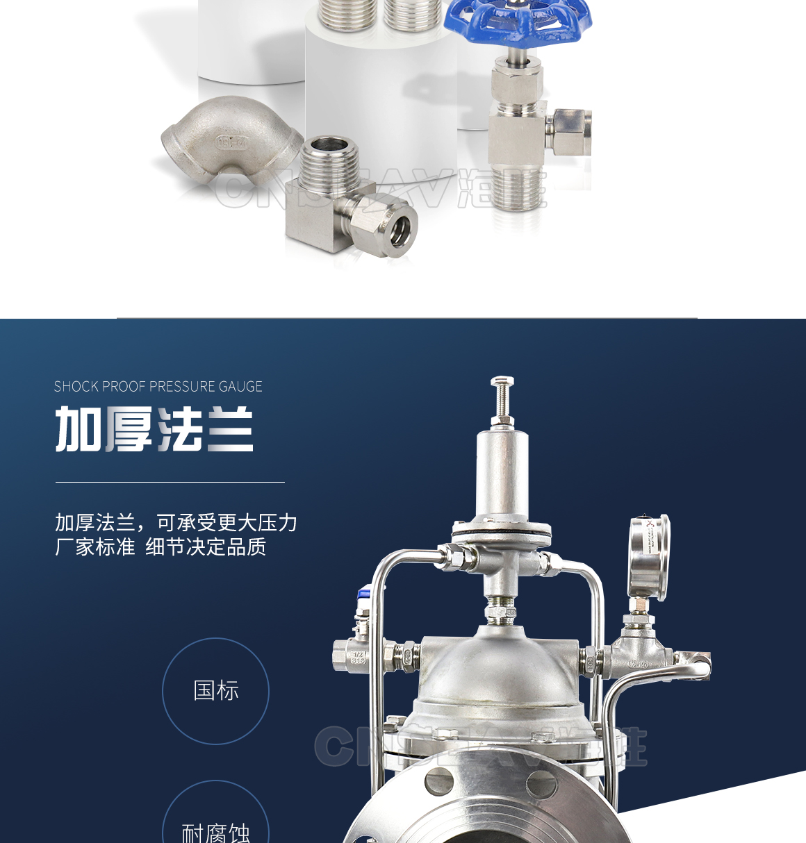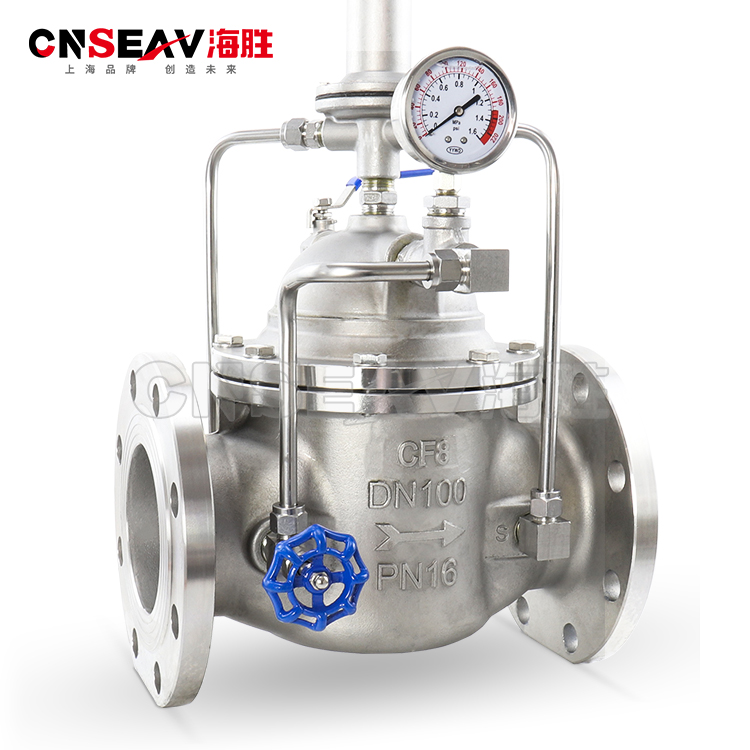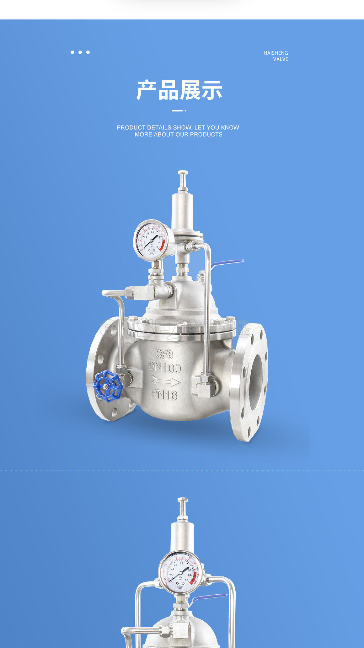 2、泄压主要安装于泄水旁路,可保证主阀上游于导阀设定值以下,防止管路高压或突然高压对管路及设备的损坏。