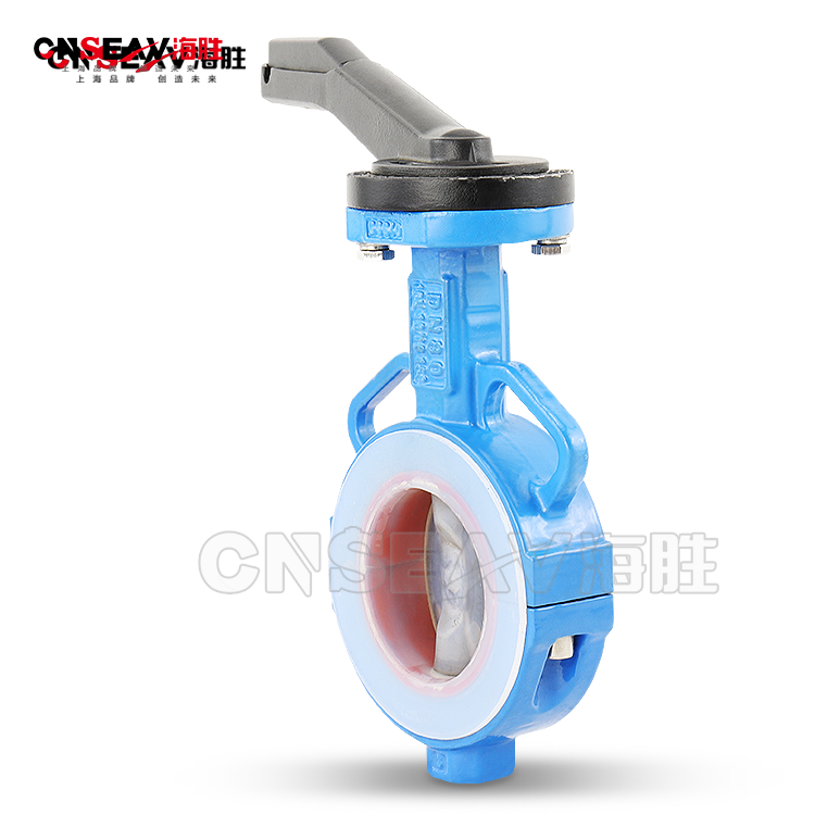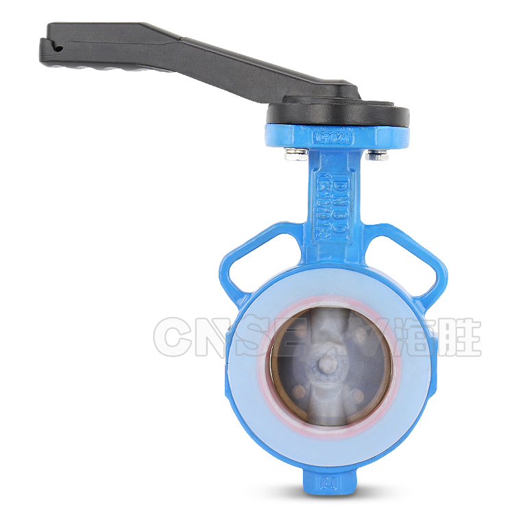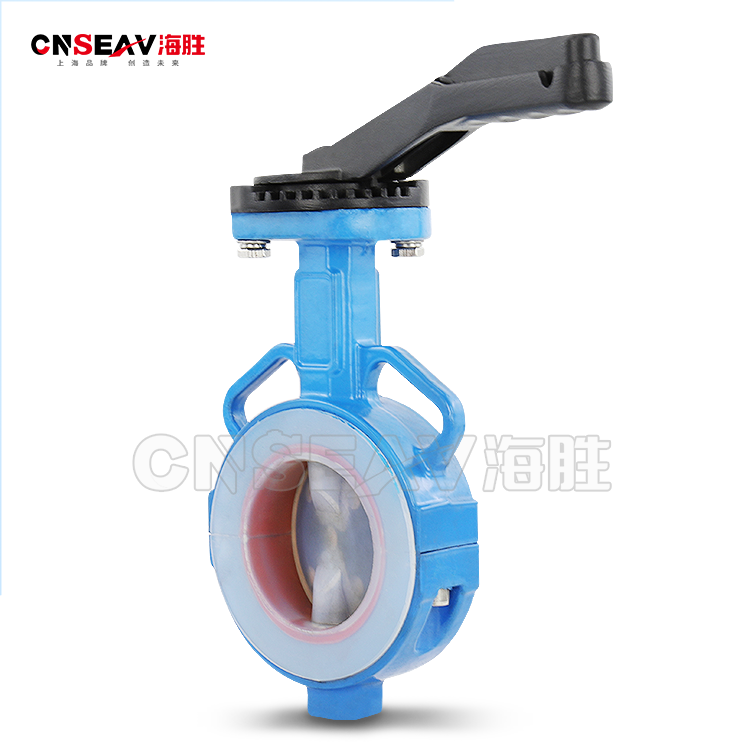 手动衬氟对夹式蝶阀D71F46采用带有球形密封表面的衬氟塑料包衬蝶板,配以阀座基部的硅橡胶衬垫调节阀门的密封性能;该阀门操作轻便,严密的密封性能,超长的使用寿命;可作快速切断或调节流量之用。适用于要求可靠密封和良好调节特性的场合。阀体采用分体式,阀轴现端的密封由蝶板与阀座之间的旋转基面加氟橡胶来控制,从而达到产品结构紧凑、外形美观、工艺合理、性能可靠。保证阀轴不与腔内流体介质接触,更换阀轴时非常方便,阀门不需要拆离离管道即可完成。产品广泛适用于各种不同类型工业管道中液体和气体(包括蒸气)的输送,特别是具有严惩腐蚀性介质的使用场合如硫酸、氢氟酸、磷、酸、氯气、强碱,王水等具有强腐蚀的介质