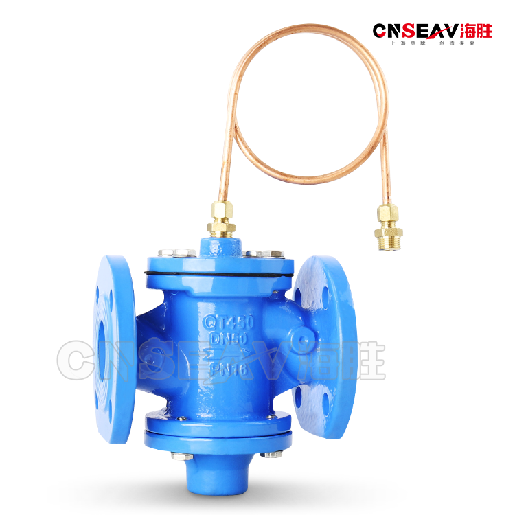 自力式压差控制阀ZYC是一种自动恒定压差的水力工况平衡用阀,应用于集中拱热、中央空调等水系统中,有利于被控系统各用户和末端装置的自主调节,尤其适用于分户计量供暖系统和变流量空调系统。自力式压差控制阀的本体是由能改变流通阻力的双通道自动调节阀和由膜片分隔而成两个独立小室的控制器组合而成,一侧小室与回水管道相通。使用时安装在回水管道上。通道自动调节阀是执行器,其动作的动力来源于供水压力P1与回水压力P2之间的压力差变化。控制器是一个压差比较器,其压差值是按被控采暖系统的阻力选用,回水侧内的弹簧反力用来平衡供水与水间的压力差。当被控采暖系统的一些用户进行室温调节,阻力增加或减少时,会引起循环流量变化,直至膜片两侧的压力平衡为止,使被控系统内部自动调节。